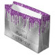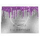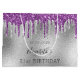 En presentväska för en gigantisk och glamorös 21:a (eller någon ålder) födelsedag. Ett faux silver tittar bakgrund med lila och faux silver glitter droppar, färgdroppstift. Anpassa och lägg till ett datum, namn och 21 år. Texten: namn är skriven i svart med ett modernt handskript i stil.