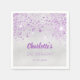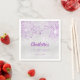 För en giftig och glamorös 21:a (eller någon annan ålder) födelsedagsfest. En silver faux metallisk tittar bakgrund med lila faux glitter droppar. Texten: namn är skriven i det lila moderna handskrivet stil-skript. Anpassa och lägg till namn, 21 år och ett datum.