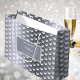 Silver rävtema. En faux silver-presentpåse för manar, killar. En ljusfaux silver-ikon, ett hanskägg och mustasch mönster. En mörk faux silver tittar bakgrund. Med texten framför: Grattis på födelsedagen. Anpassa och lägga till namn. Namn på födelsedagskalkaren är skriven med ett modernt handskript i stil.