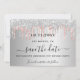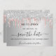 Ett giftigt och trendig Spara datumkortet för en 21:a (eller någon annan ålder) födelsedagsfest. En faux silver tittar bakgrund som dekoreras med ro guld och faux silver glitter, färgdroppstift. Anpassa och lägg till datum och namn/ålder. Texten: Spara datumet skrivs med ett stort trendig-handskript i stil.