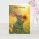 En underbar bunny i en grönt klänning luktar en vibrerande solros i ett soligt fält. All text kan ändras.