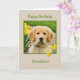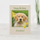 Ingenting något att säga "älskar" mer än de stora bruna ögonen av en guld- Retrievervalp. Tillfoga några gula påskliljar, och du har a långt som önskar någon per grattis på födelsedagen. Känselförnimmelsen frigör för att ändra de inre versesna för att passa dina behov.