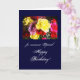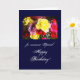 Ett gäng vackra, färgstarka ro på mörk blått bakgrund. Front: "För någon speciell" Grattis på födelsedagen!" "Ha en fantastisk dag!"