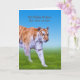 Denna grönt tiger är redo att önska någon speciell grattis på födelsedagen på detta färgstarka hälsningskort.