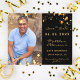 På framsidan: Lägg till ett vertikalt foto. En klassisk svart bakgrundsfärg, dekorerad med falska guldstjärnor. Anpassa med namn och detaljer. Gyllene bokstäver. För både honom och henne.