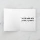 En grönt Tyrannosaurus Rex bär en födelsedagsfest hatt och säger Roar! Roar är dinosaur för Grattis på födelsedagen på ett födelsedagskort i anpassadet