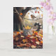Födelsedag Tabby katt i höstpipan Löv Kort