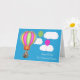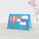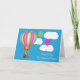 Önska din dotter en Grattis på födelsedagen med en fin tvättbjörn som flyter upp i söt blå himmel i en färglös luftballong med en magenta och grönt ballong som flyter framför fluffa vita moln.