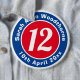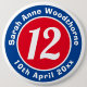 Minneshögtid med ett märke som dekoreras med mottagarens namn, deras ålder och födelsedatum.