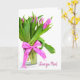 Ljusa rosa-tulpaner i vas med polka-punktbåge för Morsa.