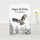 Vattenfärgen Uggla under flygning med en vinter av frostigt snö-täckt träd Forest Grattis på födelsedagen till min bror