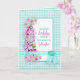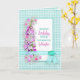 Vackra trädgårdsblommor på turkos/ aquamarinfärgat rutigt tyg med lite rosa i texten. Denna design kommer att finnas tillgänglig för många olika kategorier under födelsedagar tillsammans med andra kort, t.ex. tack, inbjudningar, jag tänker på dig osv. Band med falsk ädelsten för extra attraktion. Kortet är designat digitalt för en mer realistisk effekt.