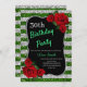 Elegant grönt, silver rand glitter och röd ros födelsedagsfest inbjudan för kvinnor oavsett ålder. Åldern kan ändras för vilken ålder som helst. Text kan ändras till vad som helst för att passa din händelse. Typsnitt, typsnitt färg och text är helt anpassade! Papper form och typ kan anpassas efter din budget och smak!