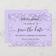 Födelsedag violett lila glitter spara datumet meddelande vykort