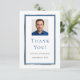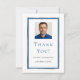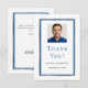 Ett modernt, minimalistiskt tackkort. Vit bakgrund och falska silver- och blå ramar. Personifiera och lägg till ditt foto, namn och födelsedagsdatum.