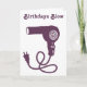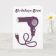 Denna gratulationskort har en enkel handritad illustration av en gammal hårfön i lila. Detta kort är redo att anpassas med ditt eget meddelande på framsidan och insidan i orange skriptstil så att du kan skapa ett roligt kort för födelsedagar eller någon annan tillställning.