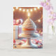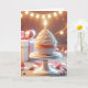 En vackert dekorerad cupkaka med ett tänt ljus på en piedestal, omgiven av festliga dekorationer som presenter och ljus. All text kan ändras.