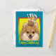 Fira en födelsedag med det här vita Pommern-Hund-hälsningskort. Med en cupkaka på huvudet är det säkert ett leende och en giggel! BTW, den här designen har flera versioner, med olika bakgrundsversioner av färg. Det finns också en inbjudan till en version från Party.