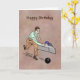 Bilden på födelsedagen hälsning för en bowlareare visar en manlig bowlareare i en grönt skjorta och brunt byxor som kastar boll i gränden. Insidan är helt anpassade.