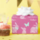 Två vita snöre-bunnier på en ljus rosa bakgrund gör att en söt Påsk födelsedag är papper. En bunny är i stånd att checka ut en pastellfjäril för grönt, och den andra bär en motsvarande grönt båge. Din anpassningsbar är vit i två fält. Detta papper kan lätt användas för Påsk eller för en vår-födelsedag. Ändra texten till vad du vill att den ska vara.