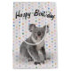 Cute grått koala björn på pastel polka dots för födelsedag. Texten kan redigeras eller tas bort.