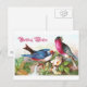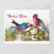 Två fåglar, ro, ängar och ett litet vattenfall på ett vintage-kort från slutet av 1800-talet.