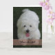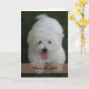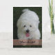 Frågar den tulear hunden för vitbomullsde, ", var är tårtan?", på detta humoristiska födelsedagkort.