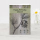 Födelsedagkort för din Deacon med en grönt- och grå färggrungebakgrund och en partisk gren av ett grästräd med en gräskotte. Det finns också 3 små kor i designen. Tack som planlägger snitt för några av inslagen i kortet.
