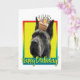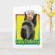 Fira en födelsedag med detta nyckfulla kort för hälsningen för grå färggreat danehunden. Med en muffin som balanseras på den, är huvudet, är fnissar denna design säker att komma med ett leende och! BTW denna design har flera versioner, med olik bakgrund färgar. Det finns också en inbjudan till en partyversion.