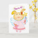 En vänlig katt i rosor klär hållhjärta-kärlek som symbolet räcker och överför in födelsedagönskemål till flickan som åldras 6.