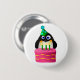En gullig tecknadpingvin med en grön prickig partyhatt och en stor rosa födelsedagtårta tände vid tre gröna stearinljus.