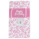 Personifiera lätt gåvamärkren och, "grattis på födelsedagen", med de levererade textmallarna. Denna design är en rosa och en vit, storleksanpassar metar typografimönsterbakgrund med numrera 60 upprepad i omväxlande och för all över tryck. Det finns en utskrivaven bandbaner- och gåvamärkre med textmallar som ska ändras till ditt egna ord, namn, initialt, eller monogramen. En underbar idé för personliggåvan som slår in för allt 60th speciellt tillfälle. Det är passande för födelsedagar, årsdagar eller någon händelse, var du firar numrera 60, precis, genom att ändra texten. NOTERA: Band- och gåvamärkren är inte verklig; de är delen av den utskrivavna designen.