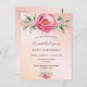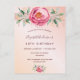 En romantisk inbjudan till en 50-års (eller vilken ålder som helst) födelsedagsfest. En rose gold och blush pink gradientbakgrund. En stor rosa akvarellros, gröna blad, lövverk med små gyllene blommor. Ett rose gold glitterband bakom blommorna. Anpassa och lägg till ett namn och festdetaljer. Mörka rose gold färgade bokstäver. Namnet skrivs med en modern handletterad stilsnack. Baksida: Rose gold, blush pink bakgrund. Tips: Om du inte vill att det ska se ut som ett vykort, klicka på anpassa, gå till baksidan och ta bort avdelaren och frimärket.
