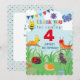 Det här födelsedagsgratulationskortet med små kryp, med en fest för kryp med en söt bin, lila spindel, larv, myra, nyckelpiga, fjäril och snigel - alla firar din lilla enes födelsedag. Regnbågsflaggor, blommor och vita, luddiga moln bidrar till feststämningen. Både flickor och pojkar kommer att älska dessa små kryp!