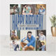Personligt födelsedags kort för alla åldrar. Fotomalen är redo för dig att lägga till 8 av dina favoritbilder och anpassa med födelsedagsbarnets namn eller relation, till exempel pappa, bror, farfar osv. Inuti kortet står "grattis på födelsedagen" och du har också möjlighet att lägga till ett eget personligt meddelande. Denna design har en blå och grå färgpalett med fet, överdimensionerad typografi.