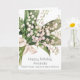 Fira en majfödelsedag med tidlös elegans och meningsfulla blommor. Detta majfödelsedags kort med födelsemblomma har en delikat akvarellbukett av liljekonvalj och hagtorn - majs traditionella födelsemblommor som symboliserar sötma, ödmjukhet, lycka, hopp och kärlek.