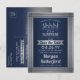 Kan du hålla en hemlighet? Bjud in familj och vänner till en elegant och spännande överraskningsfest med skräddarsydda "save the date" födelsedagsfirande-inbjudningskort i marinblått och grått. All text på denna mall är enkel att anpassa, inklusive meddelandet som lyder "Shhh! Det är en ÖVERRASKNING." Designen har en modern rand med ränder på en falsk borstad rostfri stål bakgrund, klassisk vintage art deco typografi och stilren script kalligrafi. Observera att silver är tryckt i grå ombre-färg, inte metallfolie. Detta kort kan anpassas för vilket år eller evenemang som helst och är lämpligt för både män och kvinnor. Skål och Grattis på födelsedagen!