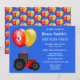 Födelsedags pojke röd traktor och ballonger inbjudningar