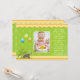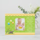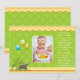 En förtjusande unisex design med en sköldpadda och ballonger. Den gröna prickiga bakgrunden har en gul/orange räfflad markis och visar födelsedagsbarnets foto.