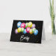 Födelsedagsfestens ballonger och färggranna konfetti på svart bakgrund. Namn kan redigeras eller tas bort. Bakgrunden till färg kan ändras.