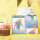 Färgfulla rosett band- och party-ballonger i en champagneflöjt med fet rosa text.