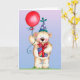 Säg Grattis på födelsedagen med den här söta björnen med en ballong och en gåva.