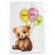 Kylt vattenfärgbjörn med ballongbukett på vitt, oavsett ålder. Bakgrunden till färg kan ändras.