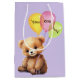 Kylt vattenfärgbjörn med ballongbukett på lilan, oavsett ålder. Bakgrunden till färg kan ändras.