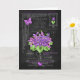 Detta kort med en lyxig look har handritade blommillustrationer av födelsedagsblombuketter och ljusa födelsedagsstenar för februarifödselsedagar, årsdagar och speciella dagar. Svart kritbräda med antika gravyrer av dekorativ hårdvara ger en nostalgisk bakgrund för klasar av blommor, ädelstenar och juvelprydda fjärilar.