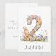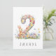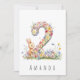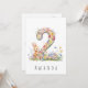 Gör en lillas 2-årsdag extra speciell med detta charmiga kort, med en delikat akvarellillustration av siffran 2, vackert tillverkad av små, färgglada pastellfärgade blommor. En söt kanin står bredvid siffran och nosar lekfullt på blommorna, vilket ger en touch av sötma och glädje till designen. Oavsett om du är förälder, farföräldrar eller familjevän är detta förtrollande kort säkert att ge både den lilla och deras nära och kära ett leende.