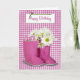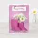 Daisy bouquet i rosa-stövlar på gingham för födelsedag