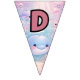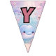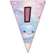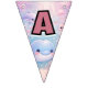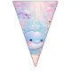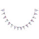 Smidda din fest med denna charmiga Pastel Garden Party Bunting Banner, med mjuka pastellfärgade blommor och fjärilar på en drömlik blandning av lila, kräm och blå bakgrund.