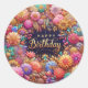 Födelsedagsetikett: Färgfull blommigt Runt Klistermärke
