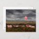 Färgglada får med en Glad födelsedag ballong, Rhossili, Gower, Sydwales